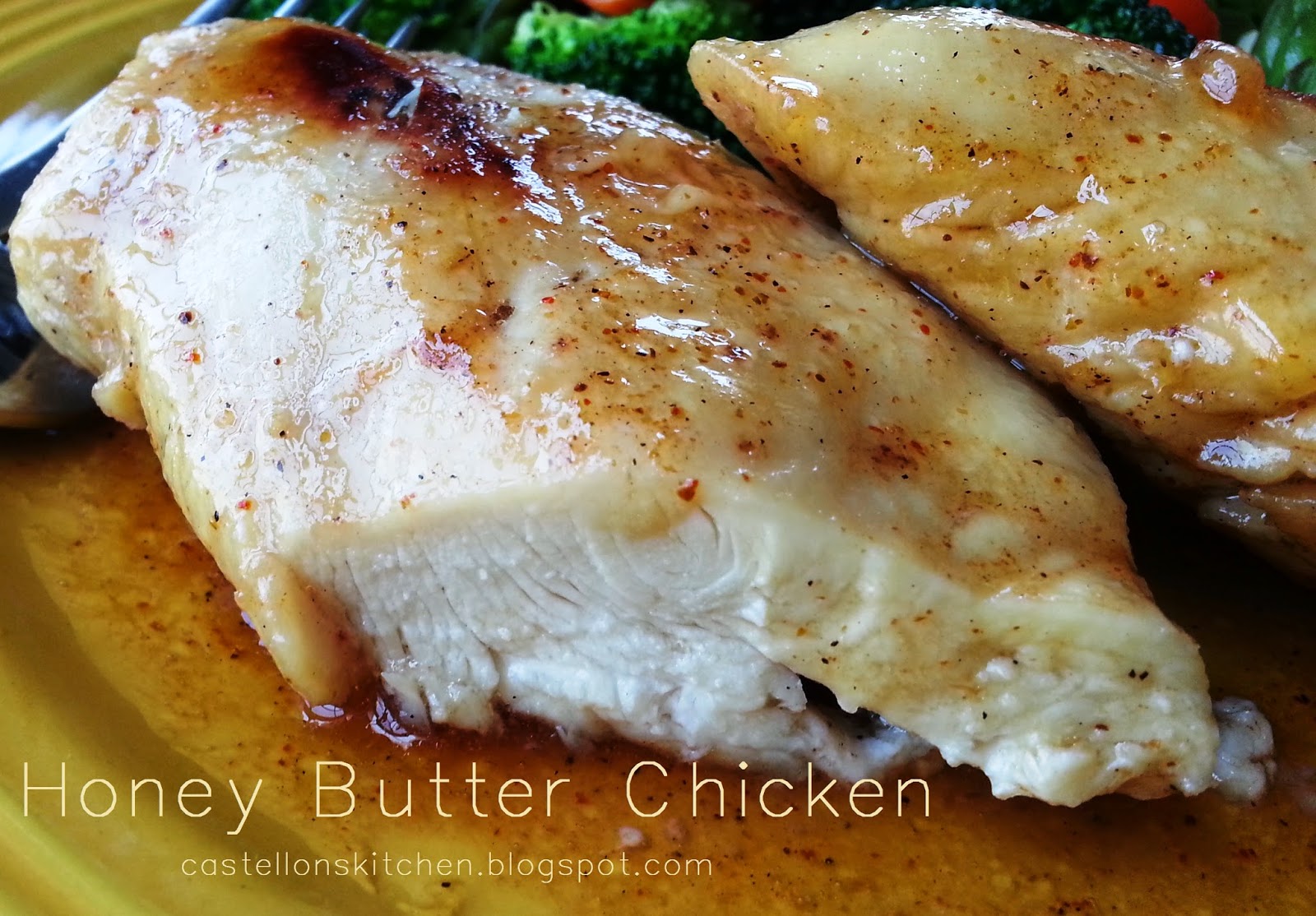 Anyway, it's hard to get creative over chicken, but I stumbled upon this amazing little recipe that will be sure to kick start your boring chicken menus. The original recipe was for pork tenderloin, which I gladly made as written and I absolutely loved it! The pork tenderloin was amazing with this yummy honey butter sauce. Slightly sweet and decadently buttery with a hint of spiciness. Delicious and I thought it would be perfect for chicken as well! So here's my slightly adapted version of that recipe using chicken that I'm sure will become a favorite in your house.